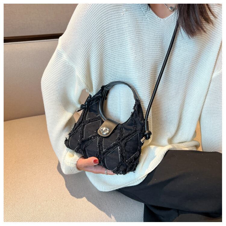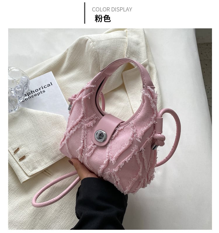 ミニマリスト デニム バゲットバッグ デニムショルダーバッグ レディース バッグ サッチェル ミニ ロートリム ツイストロック デニム ホーボバッグ 女性用 オフィスカジュアル オフィス カジュアル OL 上品 大人 10代 20代 30代 40代