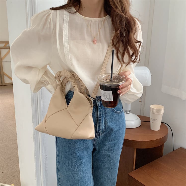 カジュアルにデニムやシンプルなTシャツと合わせれば、ギャザー仕様の持ち手がポイントとなって、ワンランク上のおしゃれに。