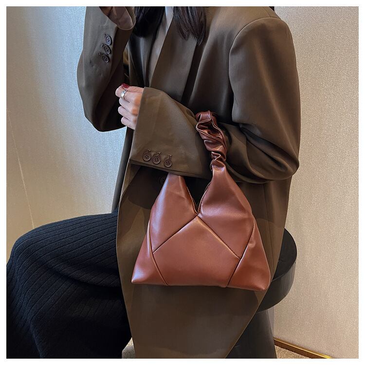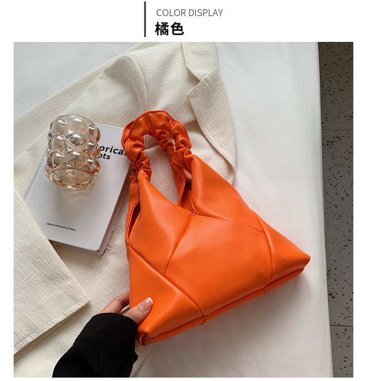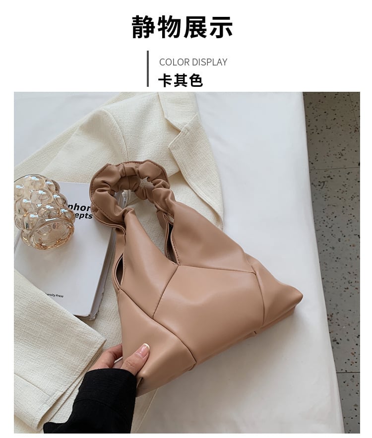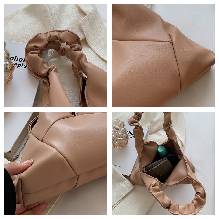 このバッグは、持ち手のギャザー仕様が目を引くデザイン性の高いアイテムです。