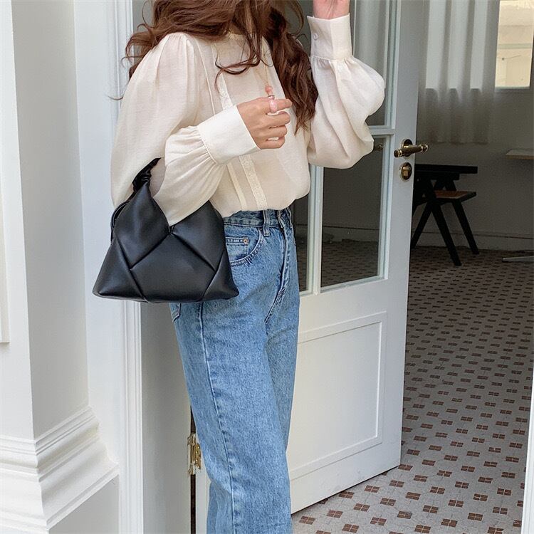 この小ぶりなバッグは、どんなコーデにも合わせやすく、夏秋の韓国ファッションにもぴったり!