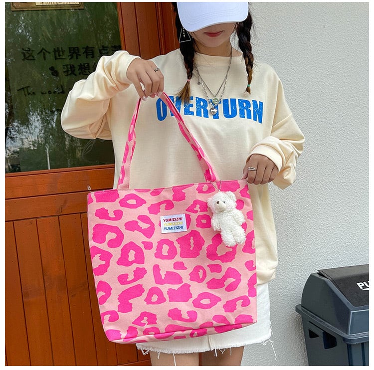 大胆なヒョウ柄デザインが目を引くこのトートバッグは、日常使いから旅行まで幅広く活躍します!