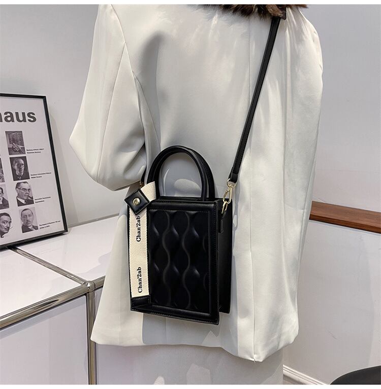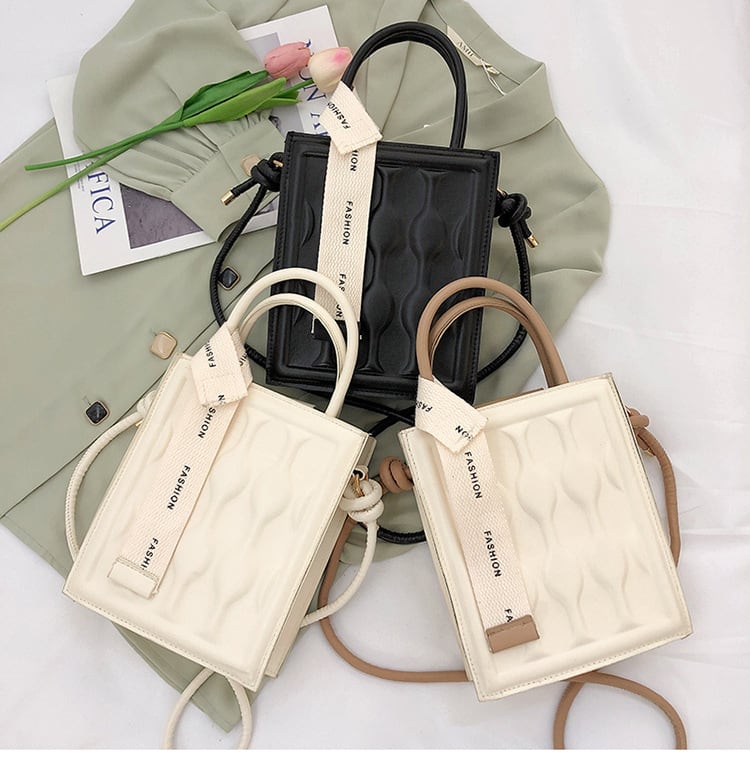 キャンバスチャームスクエアバッグ ぽこっとウェーブデザイン ♪ 2way スクエア ショルダーバッグ 4カラー ハンドバッグ バッグ 鞄 ミニバッグ PU カジュアル 大人っぽ シンプル 大流行新作 韓国系 マグネット 配色 センターピンタック 肩掛け ショルダーバッグ