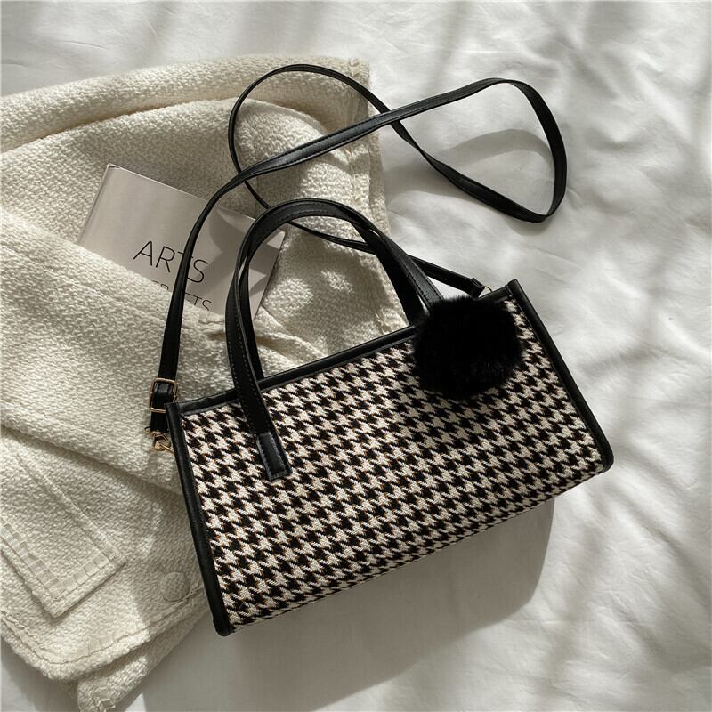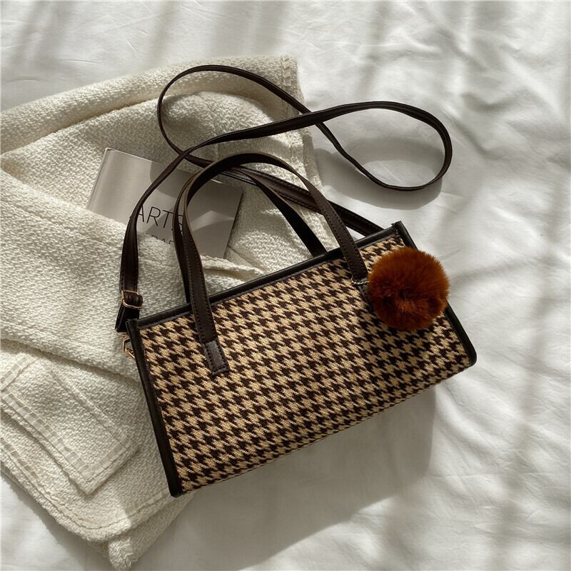 レトロ スクエアバッグ 超人気 レトロ ファッション ヒョウ柄 千鳥格子 プリント 切り替え 配色 秋冬 ファスナー 斜めがけ 肩掛け ショルダーバッグ・トートバッグ秋と冬のハイエンドの格子柄のハンドバッグの女性2022年の新しいテクスチャーのすべてがマッチした高価値のワンショルダーのメッセンジャーバッグ