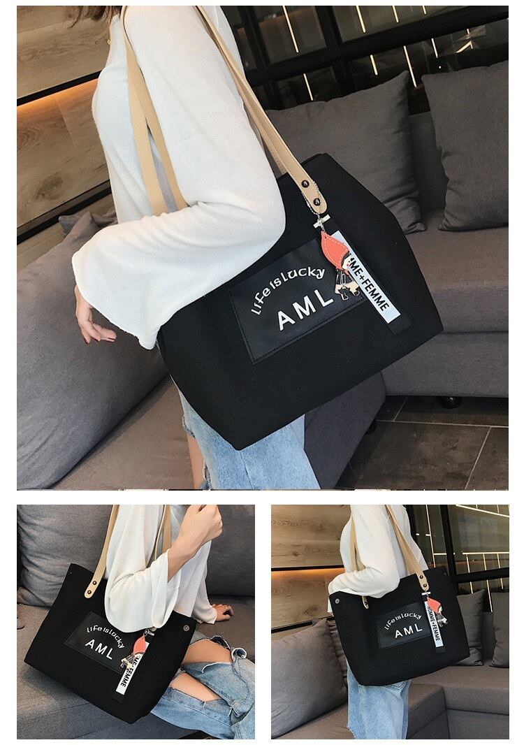 韓国カジュアルキャンバスショルダーバッグ カジュアル 肩がけ ショルダーバッグ 帆布 チャーム付
