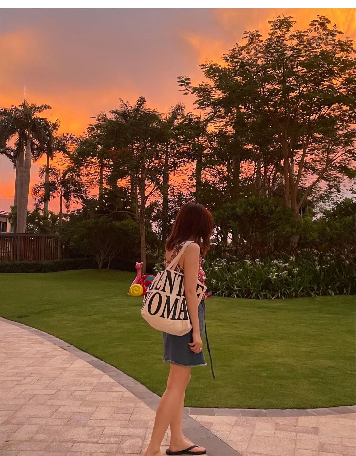 レトロなワンピースやスカートに合わせると、トートバッグの韓国風デザインが、こなれた印象を演出。