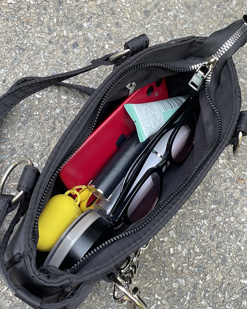 どんなコーデにも馴染みやすいブラックカラーで、デイリー使いから特別な日のおしゃれまで幅広く活躍するバッグです。