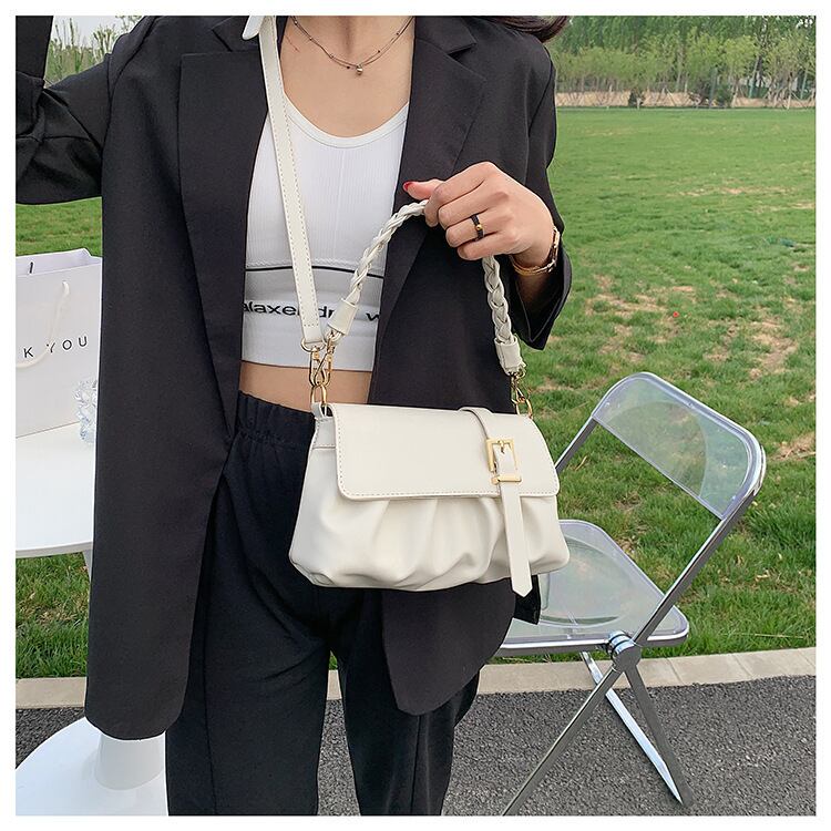 ミニマムなサイズ感が可愛らしい、ショルダー部分の三つ編みが特徴のハンドバッグ。