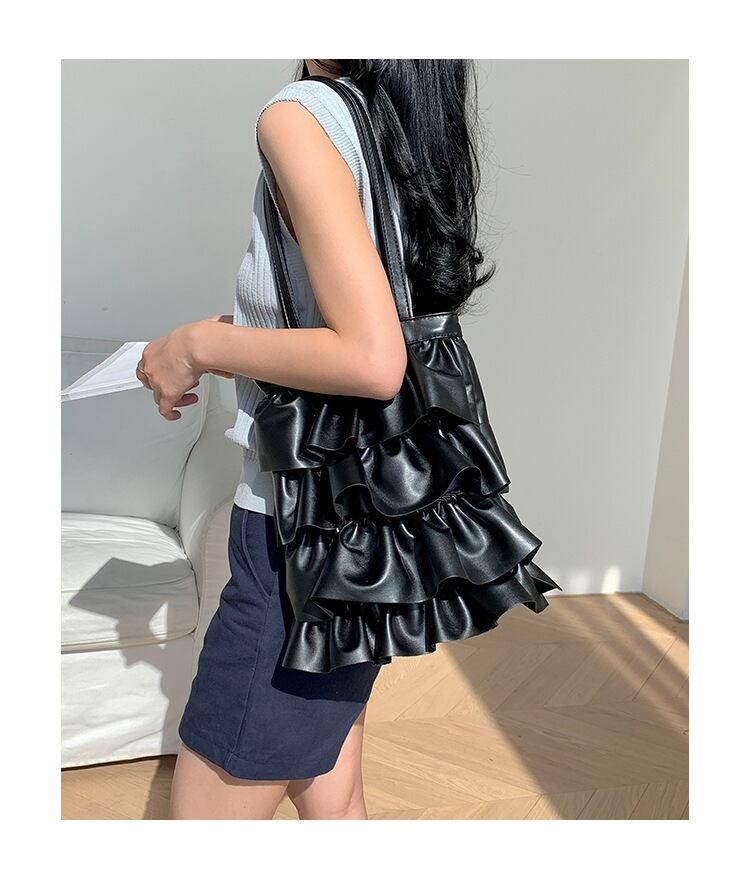 韓国スタイルフリルトートバッグ フェイクレザー フリル トートバッグ
