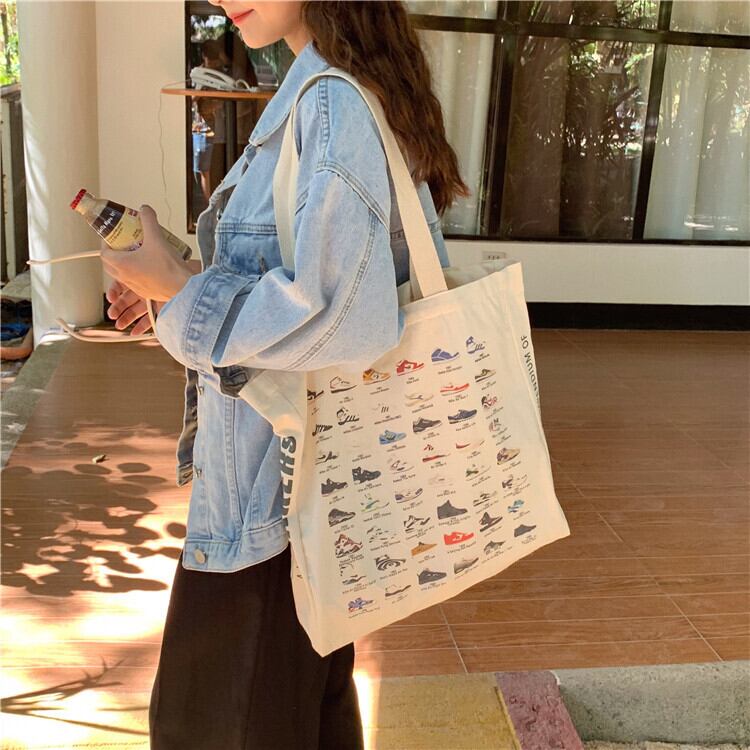 韓国スタイルキャンバストートバッグ レディース キャンバスバッグ 大きめ ショルダー 帆布 布 a4 A4 雑誌 スニーカー柄 カメラ柄 大容量 【メール便送料無料】 軽い 軽量 厚手 マザーズバッグ キャンバスバッグ ショッピングバッグ