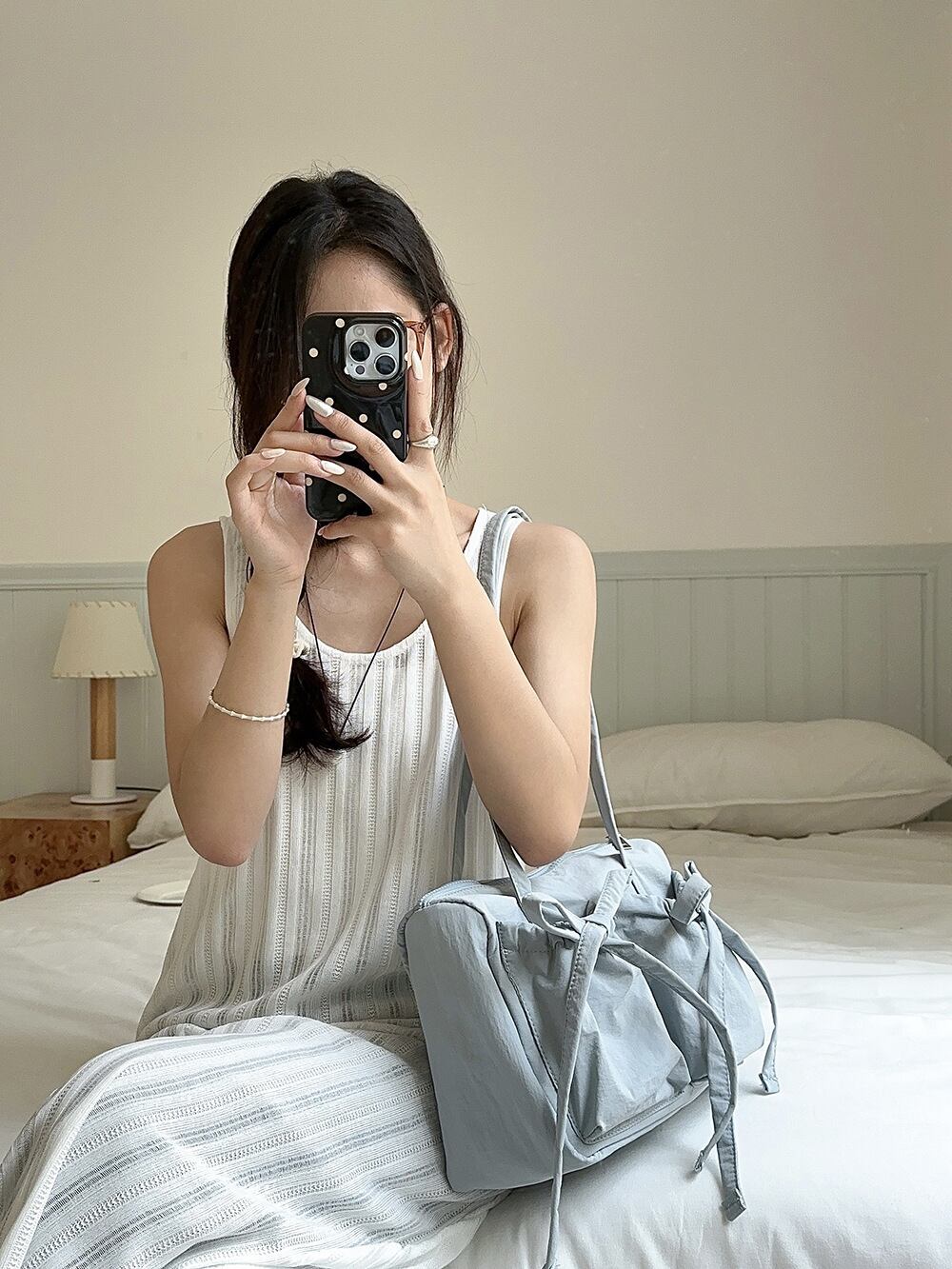 韓国らしいトレンド感をぎゅっと詰め込んだ、ジェニーリボンショルダーバッグは、シンプルさの中にしっかりと華やかさを感じられる一品です。