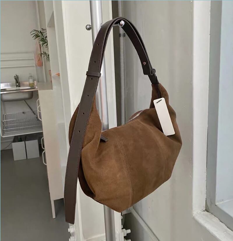 ハーフムーン フェイクスエードトートバッグ ビノスエード半月バックラウンドショルダーバッグクロスバッグ